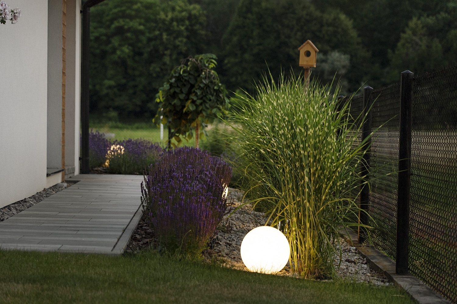 • Esta esfera luminosa que imita pedra é ideal para jardins rochosos ou ao redor de arbustos.