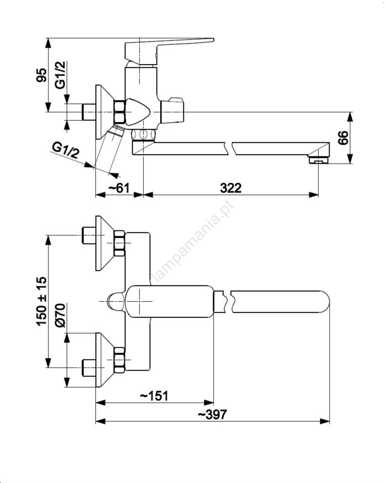 • Elemento de controlo: cartucho cerâmico de 30 mm.