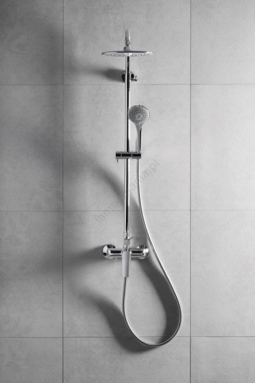 • O pacote inclui: torneira com desvio cerâmico para chuveiro, barra de chuveiro, cabeça de chuveiro articulada, ducha manual com suporte, kit de montagem (excêntricos com vedação + rosetas cônicas – 2 unidades, barra de chuveiro de parede – 1 unidade), mangueira de chuveiro em PVC (L=1500 mm).