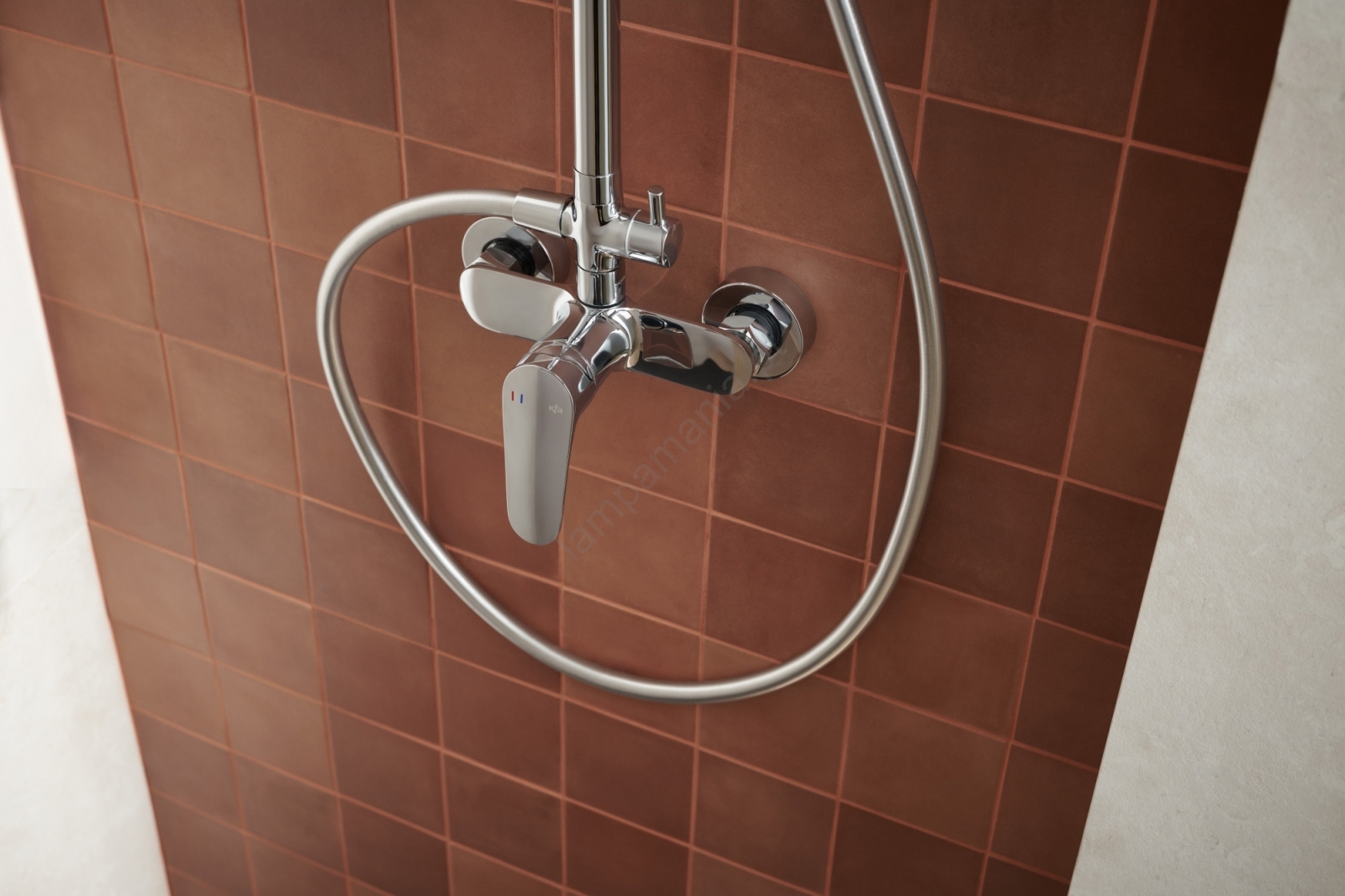 • Conteúdo da embalagem: conjunto completo de torneira, barra de chuveiro superior/inferior, cabeça de chuveiro articulada, chuveiro de mão com pega, kit de montagem (excêntricos com vedação + rosetas - 2 unidades, barra de chuveiro de parede - 1 unidade), mangueira de chuveiro em PVC (L=1500 mm), luvas de montagem brancas.