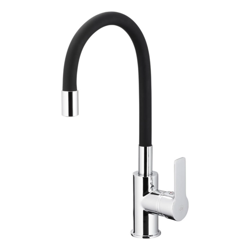 KFA Armatura 6553-915-00 - Torneira para lava-loiça com braço flexível RUMBA 40,5 cm preto/cromado brilhante