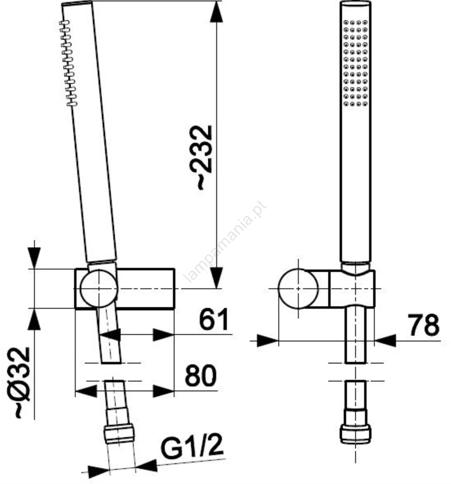 • O pacote inclui: suporte de parede ajustável, kit de montagem, chuveiro manual, mangueira de PVC (L=1500 mm).