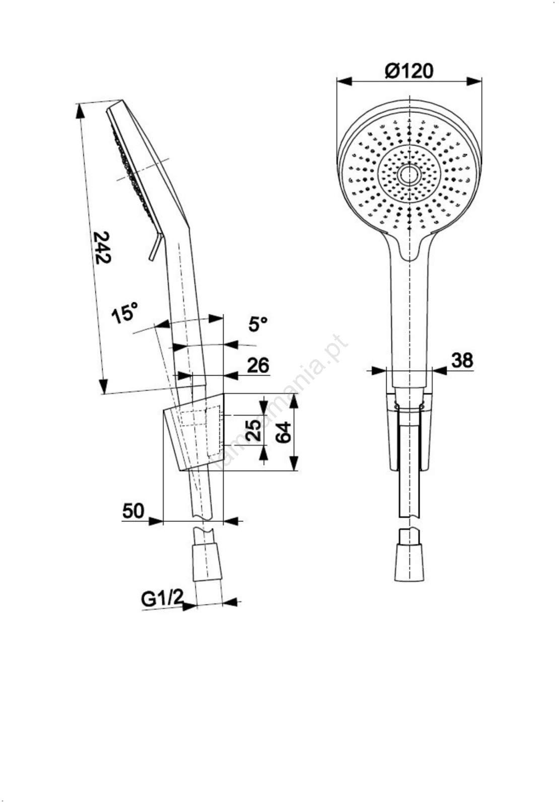 • O pacote inclui: suporte de parede ajustável, kit de montagem, chuveiro manual, mangueira de PVC (L=1500 mm).