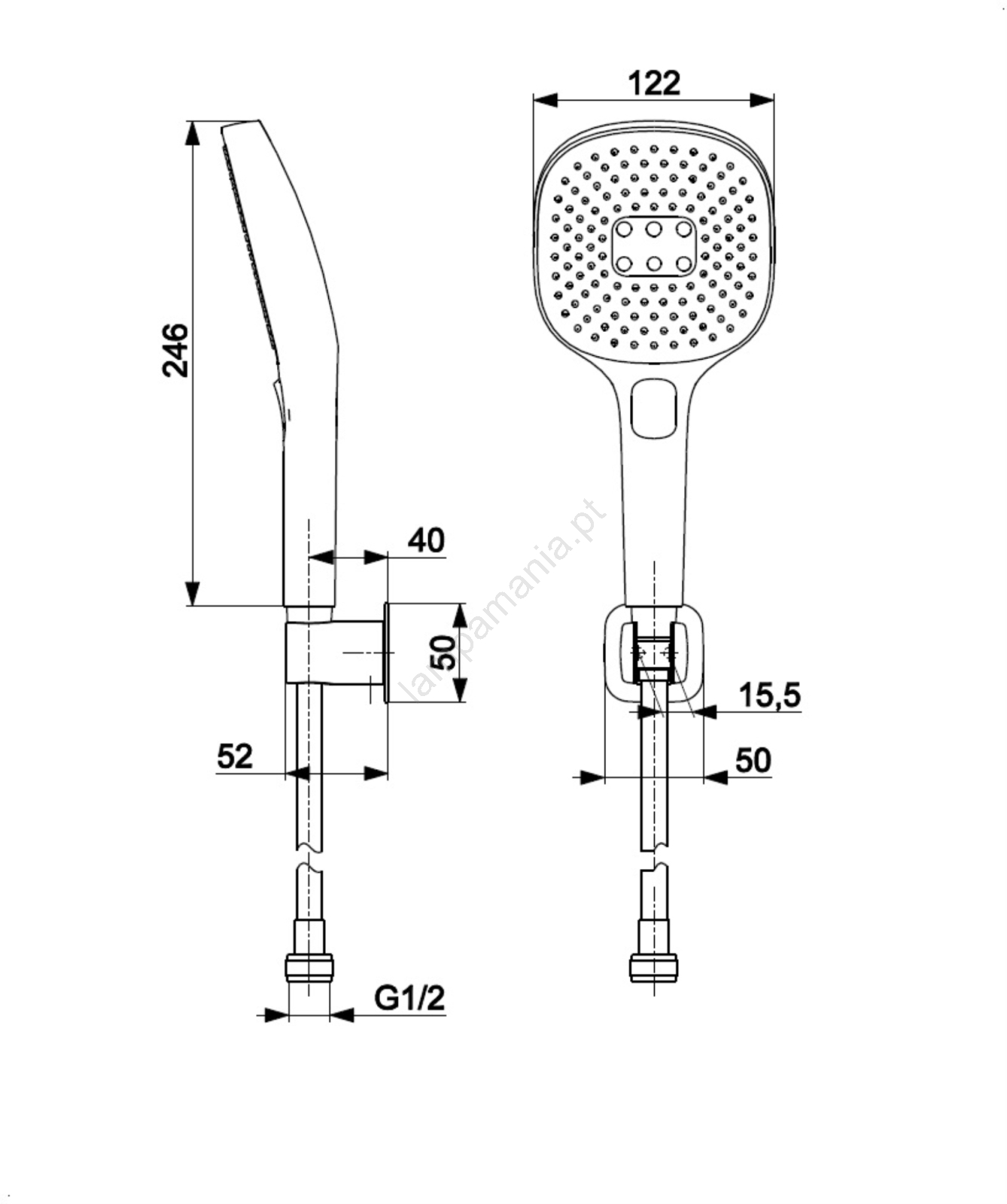 • Conteúdo da embalagem: suporte de parede ajustável, conjunto de montagem, duche de mão, mangueira em PVC (L=1500 mm).