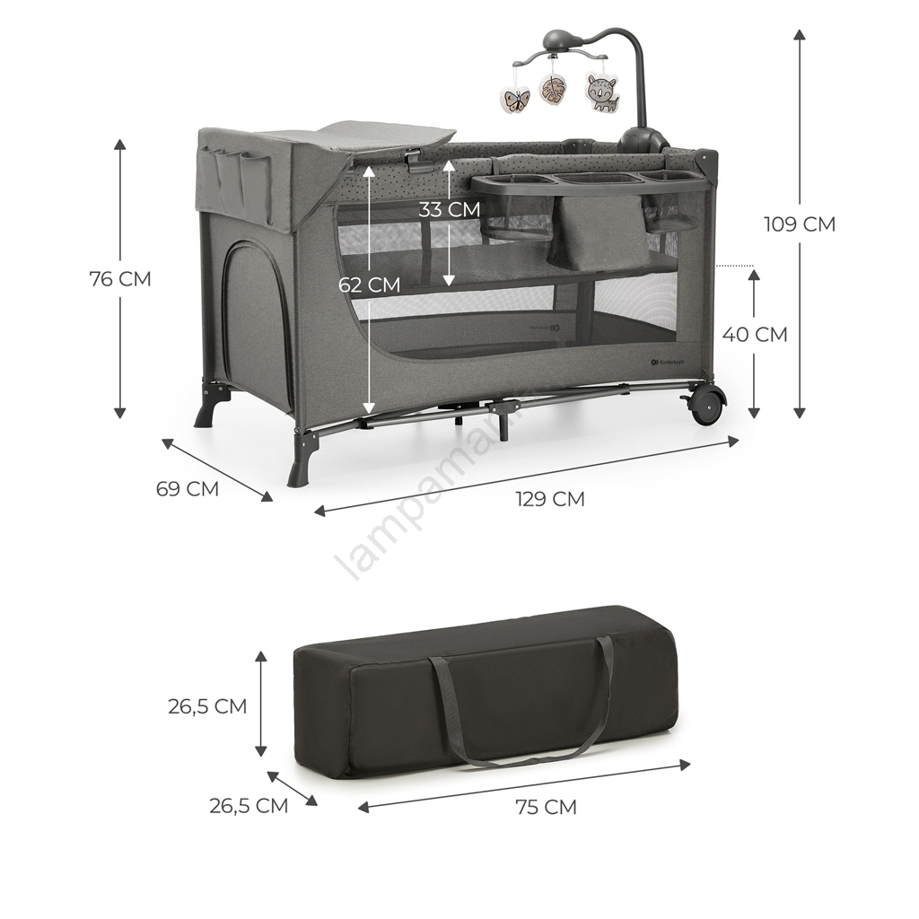 KINDERKRAFT - Berço de viagem JOY 2 com acessórios cinzento