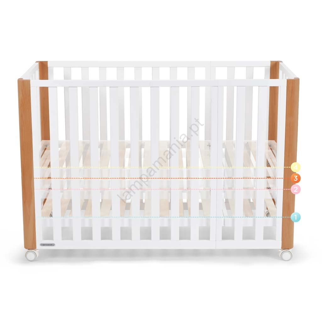 • Altura do estrado ajustável: 3 níveis na cama auxiliar e 4 no berço.