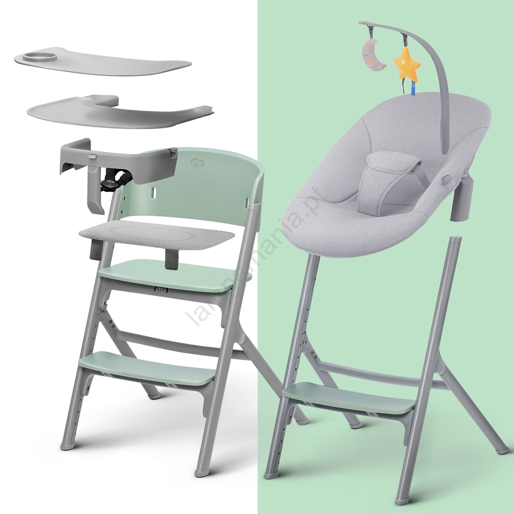 • A espreguiçadeira alta pode ser usada junto com a cadeira ou separadamente.