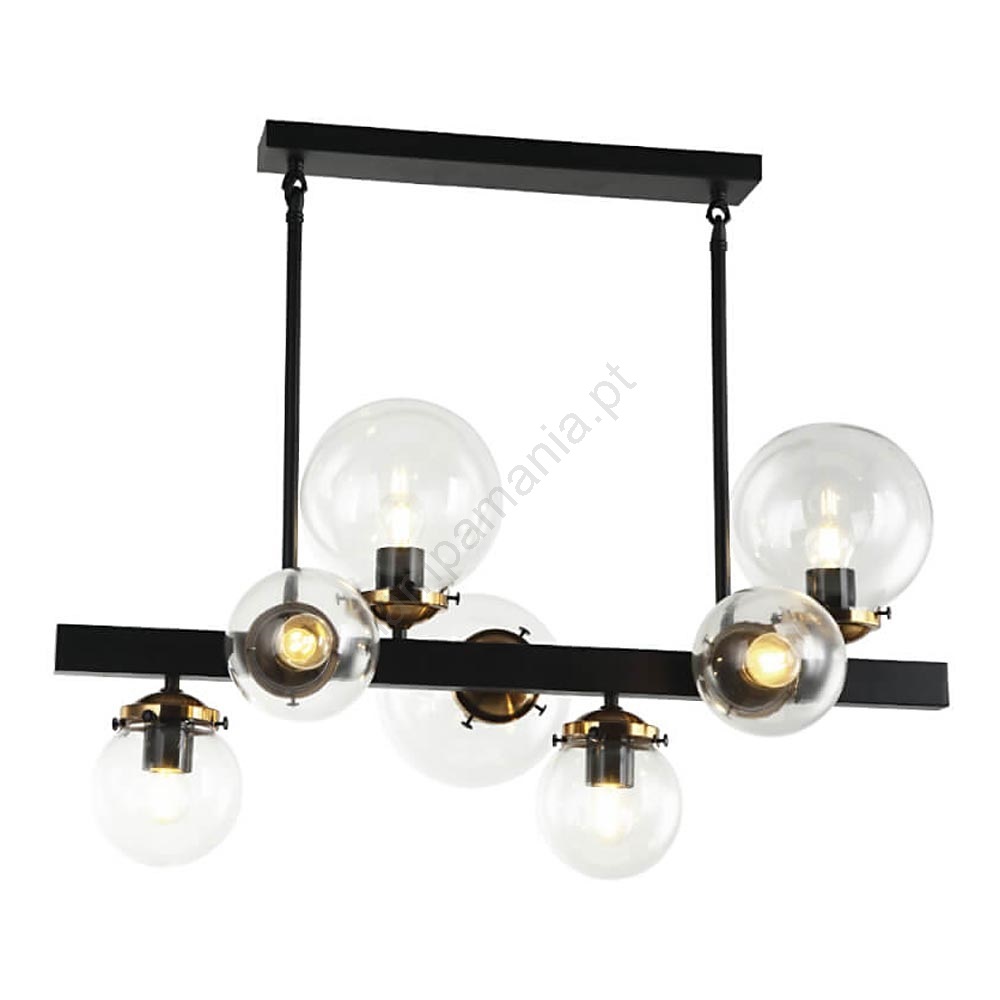 Candelabro suspenso HYPERION 7xE27/7W/230V preto/transparente caracteriza-se por um design agradável e funcional.  Uma lâmpada com casquilho E27 é adequada para a iluminação Aqui, pode comprar outras lâmpadas a preços vantajosos. Terá um complemento interessante para a sua casa.