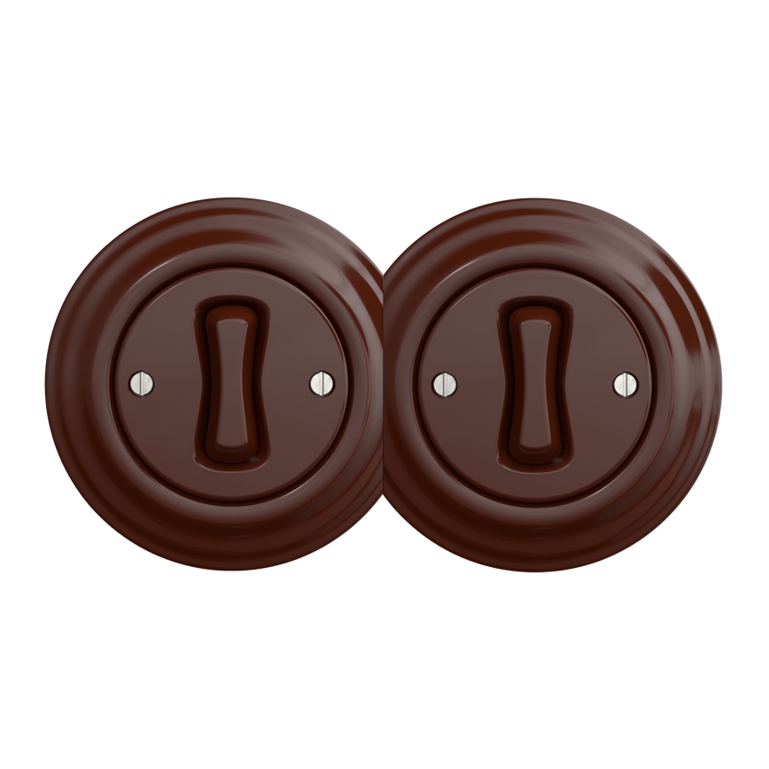 Kliklap - Interruptor duplo unipolar retro com moldura n.º 1, castanho