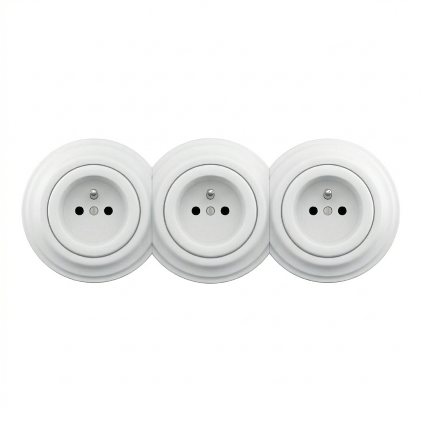 • Kliklap - Tomada retro tripla para uso doméstico com moldura, 230 V, cerâmica branca