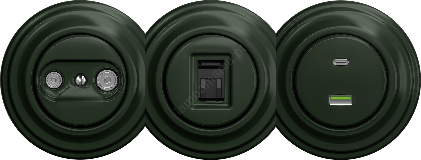 Kliklap - Tomada de antena retro TV+R (em série) sem moldura verde