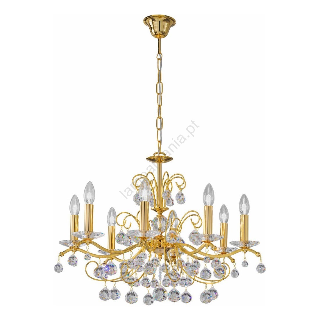 Kolarz 3234.88.3.KoT - Lustre de cristal CARMEN suspenso por corrente, 8xE14/60W/230V, acabamento em ouro 24K
