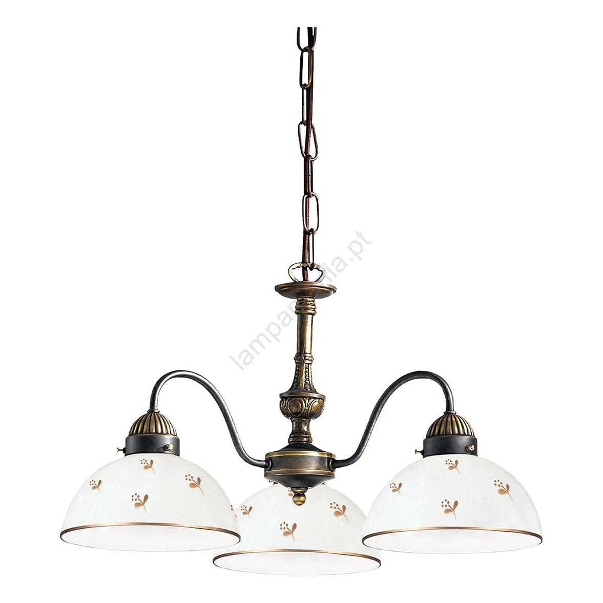 Kolarz 731.83.170 - Lustre em corrente NONNA 3xE27/75W/230V, com motivos florais e acabamento em ouro rosé caracteriza-se por um design agradável e funcional.  Uma lâmpada com casquilho E27 é adequada para a iluminação Aqui, pode comprar outras lâmpadas a preços vantajosos. Terá um complemento interessante para a sua casa.