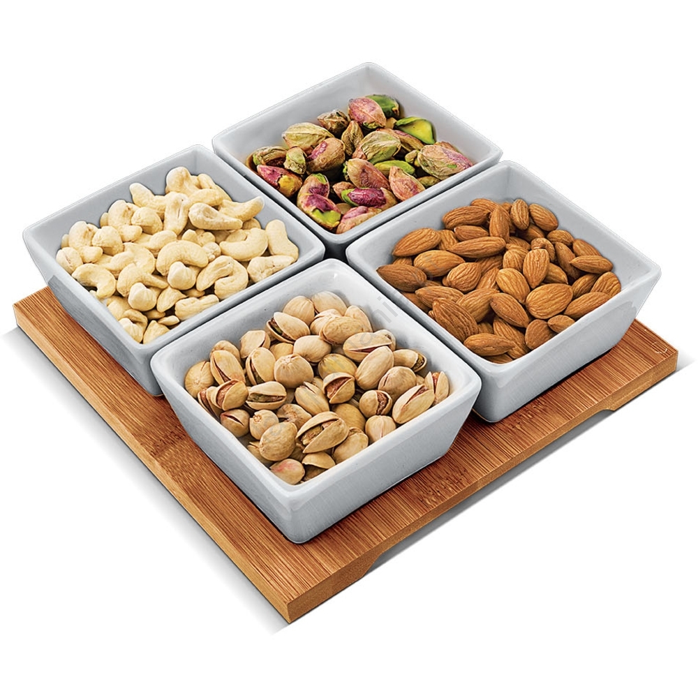• O conjunto inclui 4x tigelas e um tabuleiro de madeira.