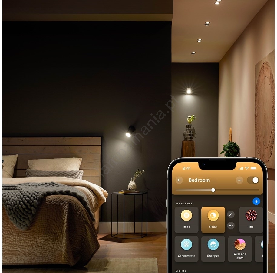 • Controle até 10 produtos via Bluetooth; ao usar o Hue Bridge, o limite aumenta para até 50 dispositivos conectados.