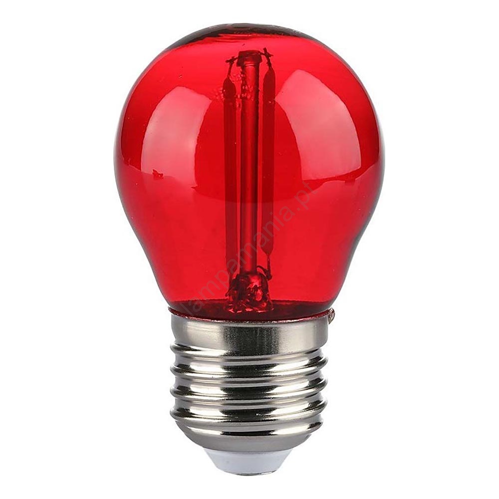 Lâmpada LED FILAMENT G45 E27/2W/230V vermelho O design de alta qualidade garante uma iluminação perfeita do seu interior. A categoria E27 é dedicada às lâmpadas com o mesmo casquilho. Na nossa loja virtual, pode escolher entre lâmpadas com filamento tradicional ou lâmpadas LED modernas, que são mais eficientes em termos energéticos e têm uma vida útil mais longa.
