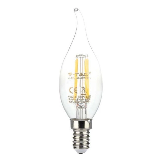 Lâmpada LED Filamento E14/4W/230V 3000K O design de alta qualidade garante uma iluminação perfeita do seu interior. A categoria E14 é dedicada às lâmpadas com o mesmo casquilho. Na nossa loja virtual, pode escolher entre lâmpadas com filamento tradicional ou lâmpadas LED modernas, que são mais eficientes em termos energéticos e têm uma vida útil mais longa.
