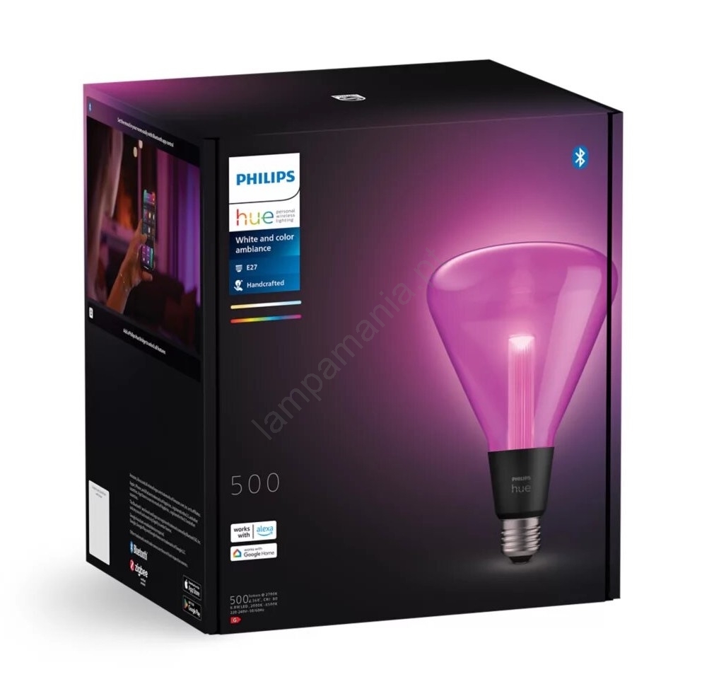 • Lâmpada Philips Hue White And Color Ambience com base E27, vendida separadamente.