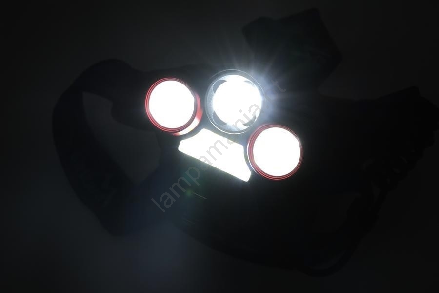 • Lanterna frontal potente com iluminação XM-L, 2x LED XP-E e LED COB.