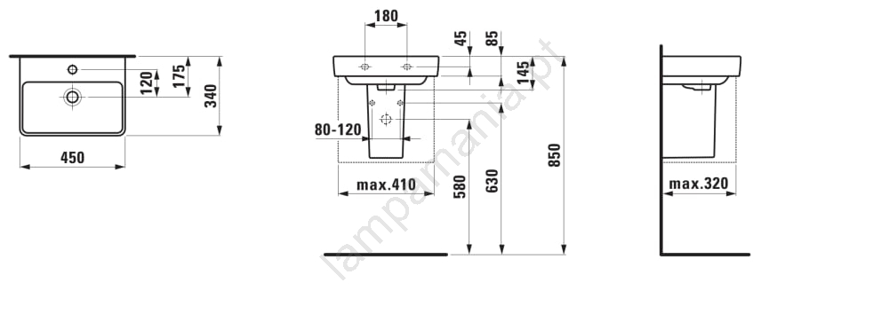 • A embalagem inclui o lavatório sem sifão e sem torneira.
