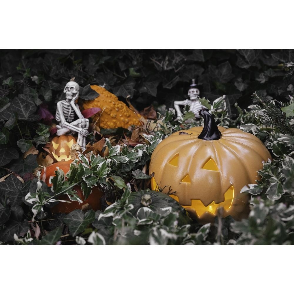 Decoração LED HALLOWEEN LED/2xLR44/branco quente esqueleto numa abóbora resina