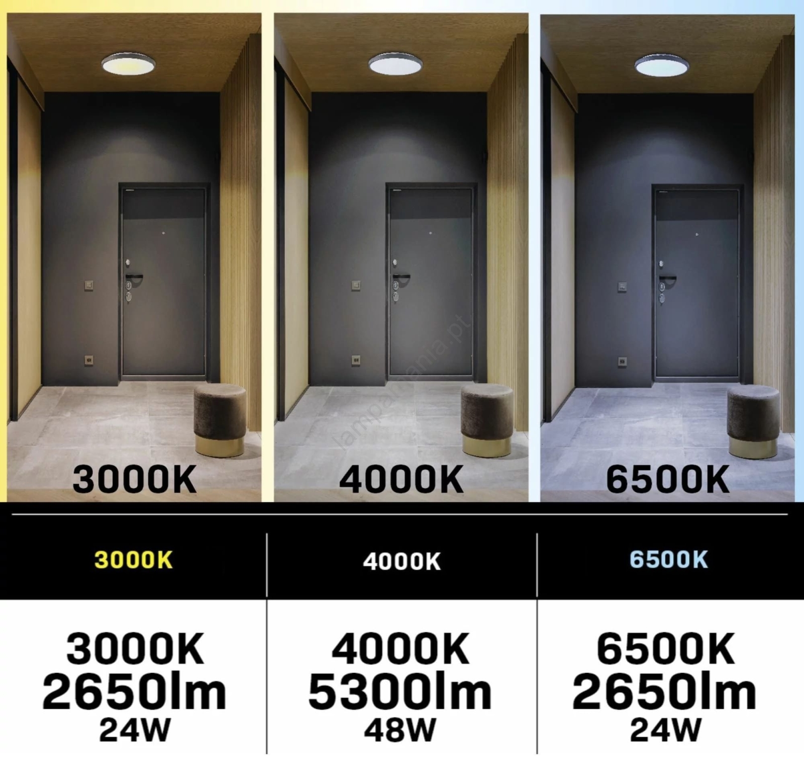 • Também pode utilizar o comando para alterar continuamente a cor da luz de branco quente para branco frio (3000K - 6500K).