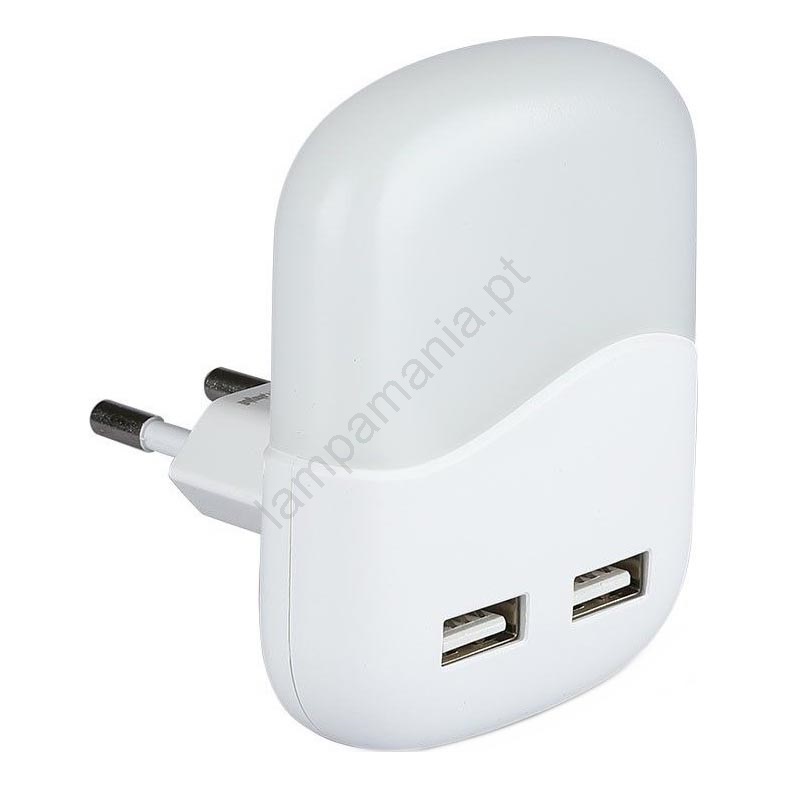 Luz LED noturna com sensor de anoitecer 2xUSB LED/0,45W/230V 3000K