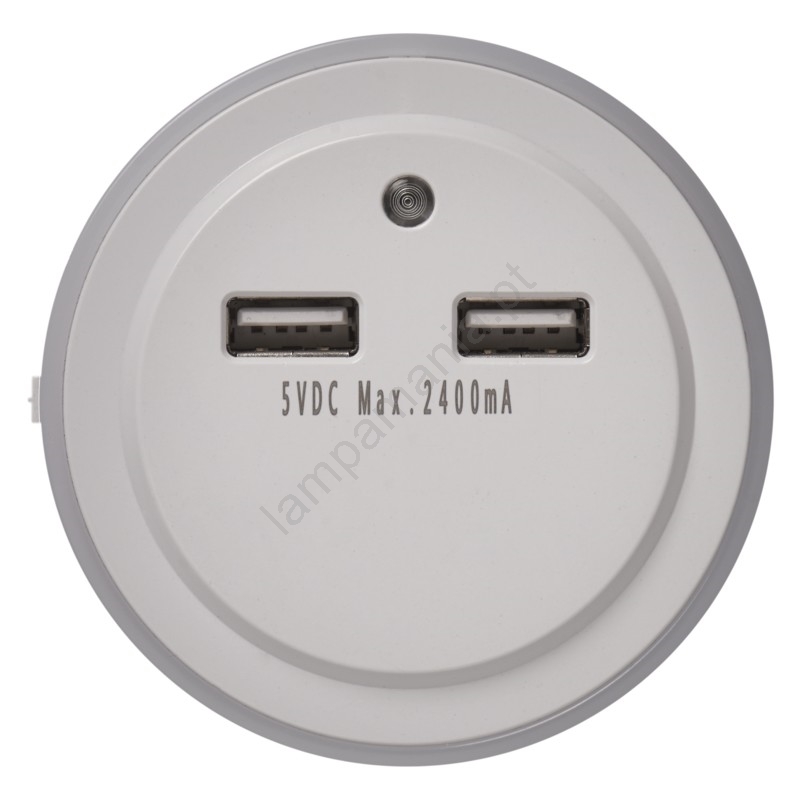 LED Luz noturna para tomada com fotossensor+2xUSB 3xLED/0,3W/230V
