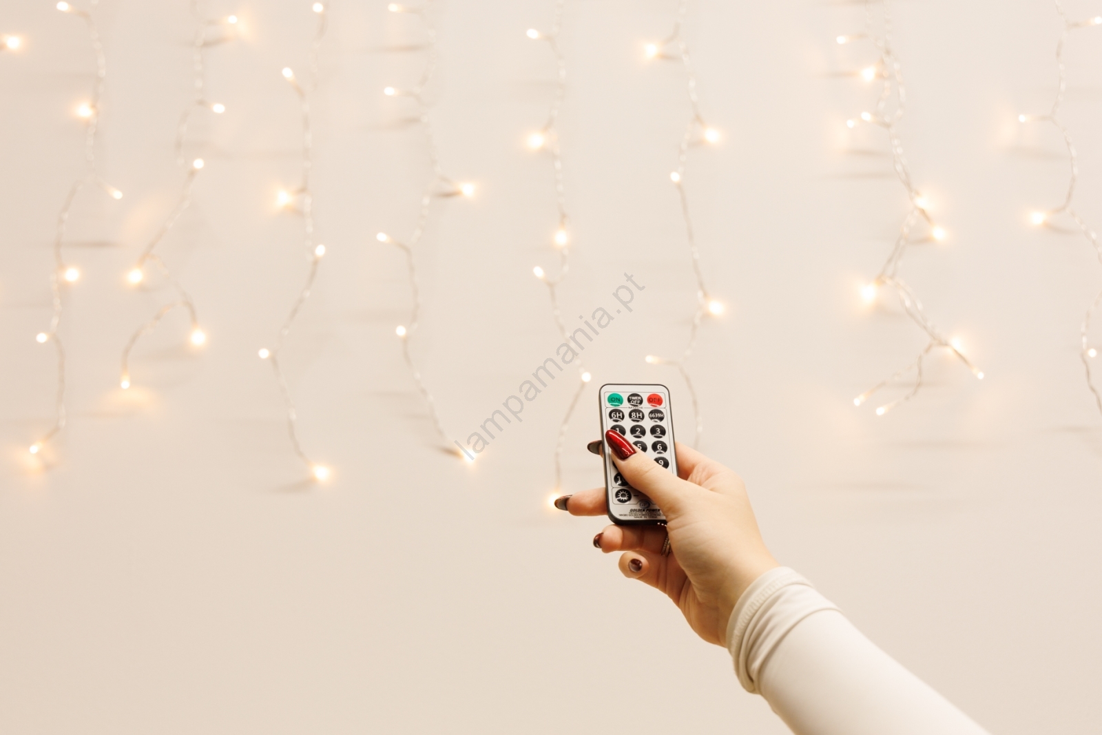 • Cortina de Natal exterior LED regulável CURTAIN 360xLED/8,4W/230V 2x2 m IP44 branco quente + comando