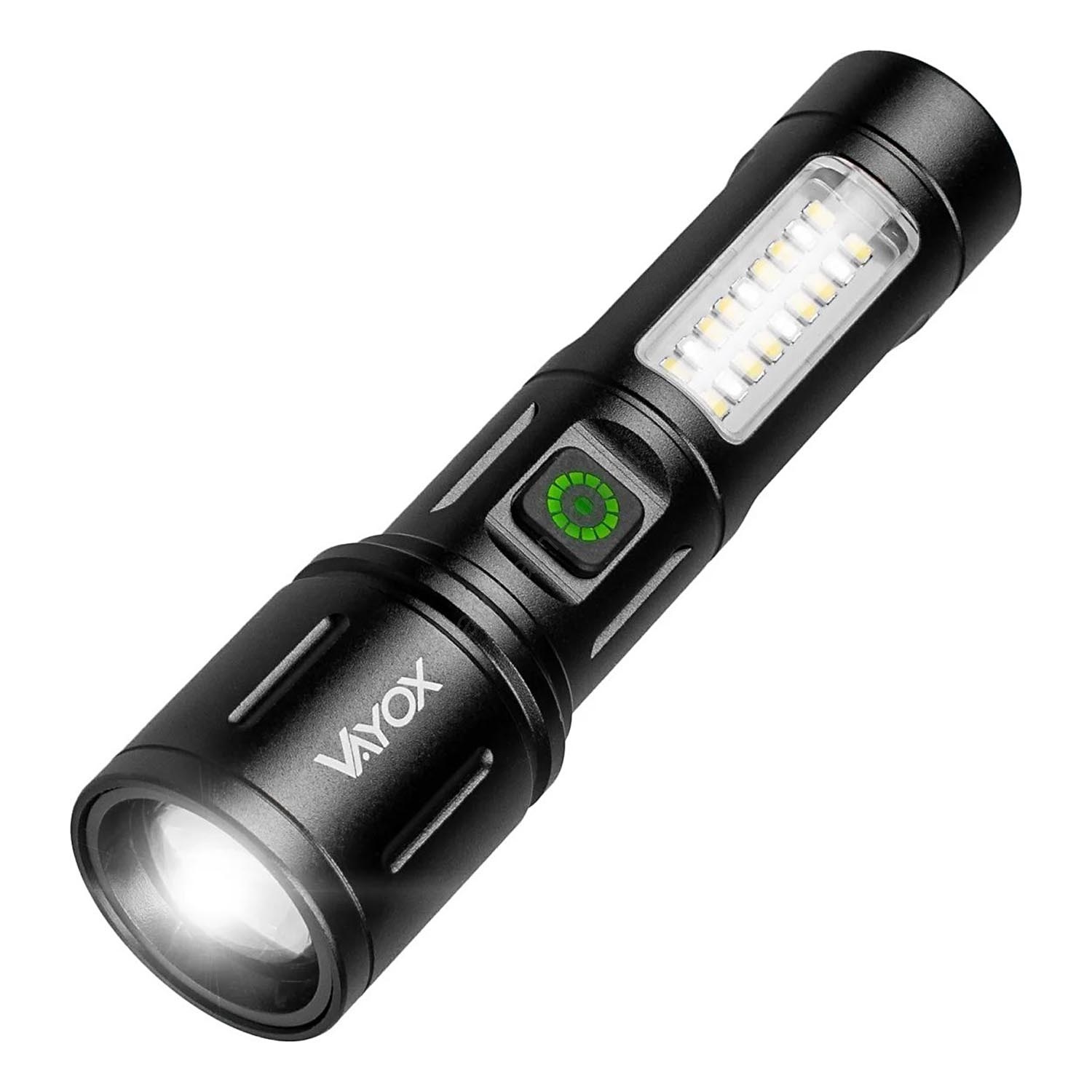 • Lanterna tática recarregável com luz lateral.