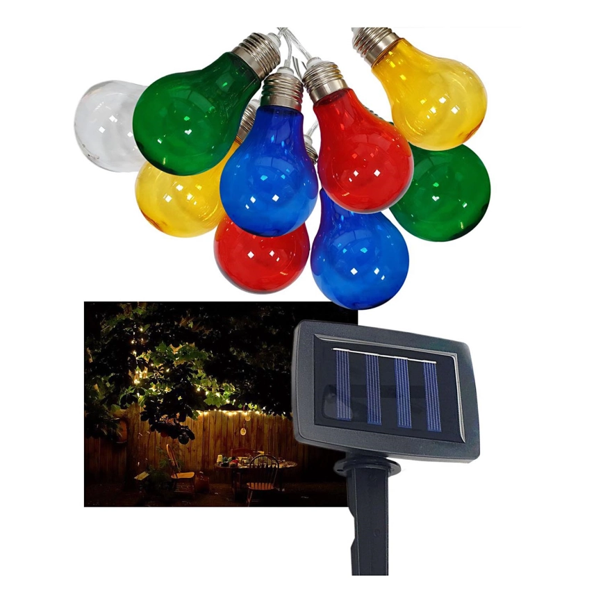 • Cordão solar com 10 lâmpadas LED coloridas.