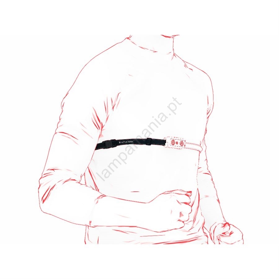 • A possibilidade de fixação à cinta peitoral elimina o risco de ofuscar outros corredores ou peões.