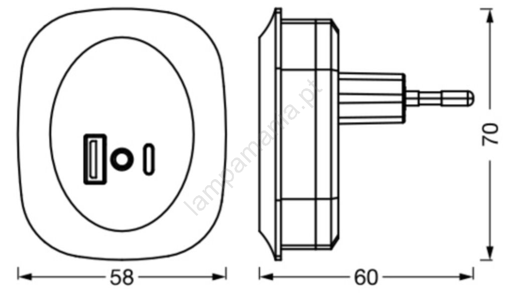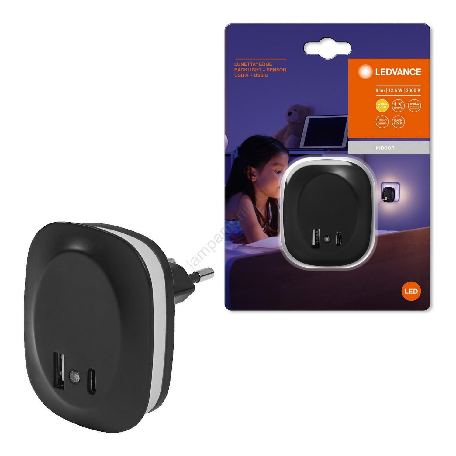• Ledvance - Iluminação noturna de tomada LED com sensor e USB LUNETTA LED/12,5W/230V 3000K preto