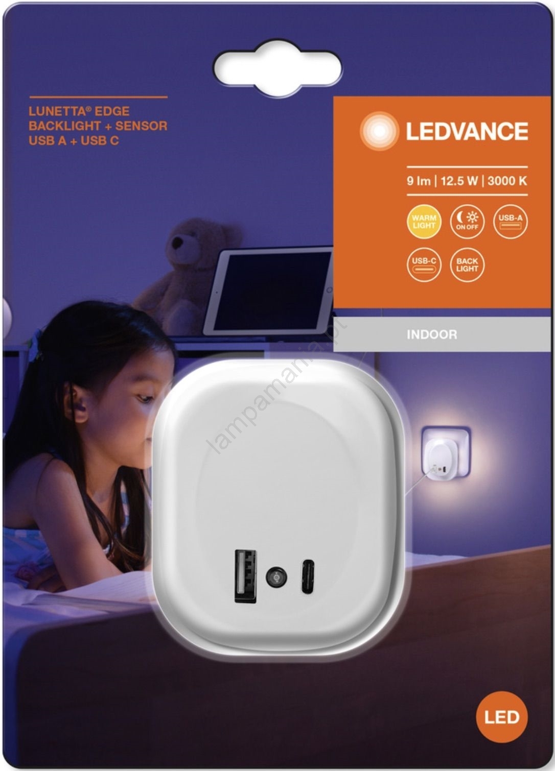 • Ledvance - Iluminação noturna de tomada LED com sensor e USB LUNETTA LED/12,5W/230V 3000K branco