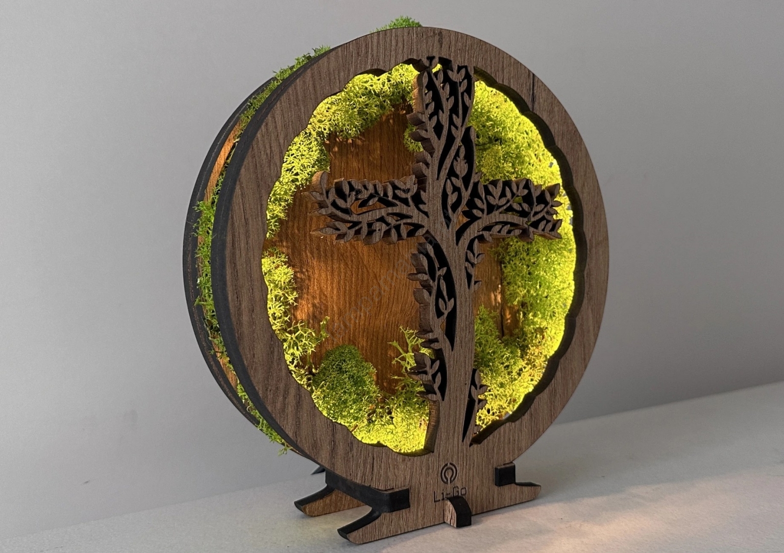 Li-Go 23622/DUB2 - Luminária decorativa de mesa LED dimerizável LED/12W/230V 20x22 cm carvalho/Cruz em musgo