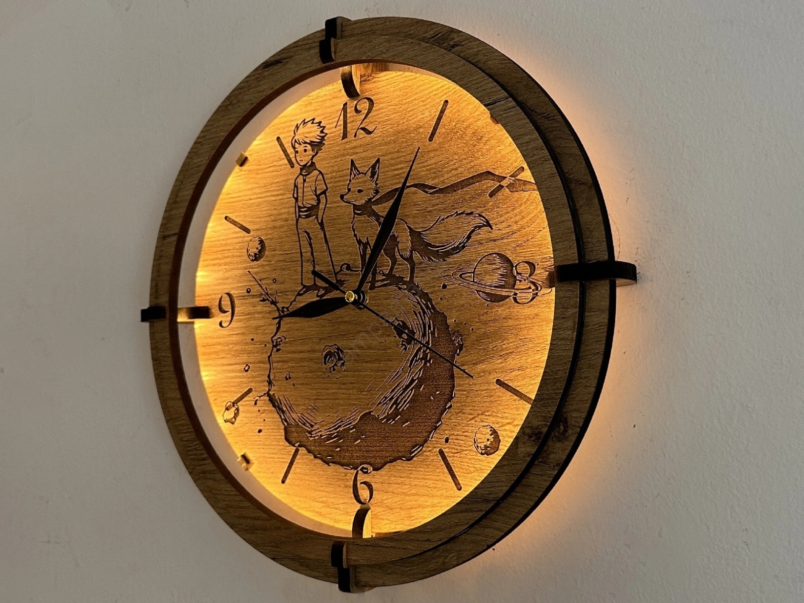 Li-Go 23712/DUB/BAT2 - Relógio LED regulável com sensor de movimento LED/10W/5V 20000 mAh + 1xAA diâmetro 32 cm carvalho/O Pequeno Príncipe