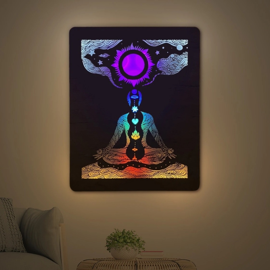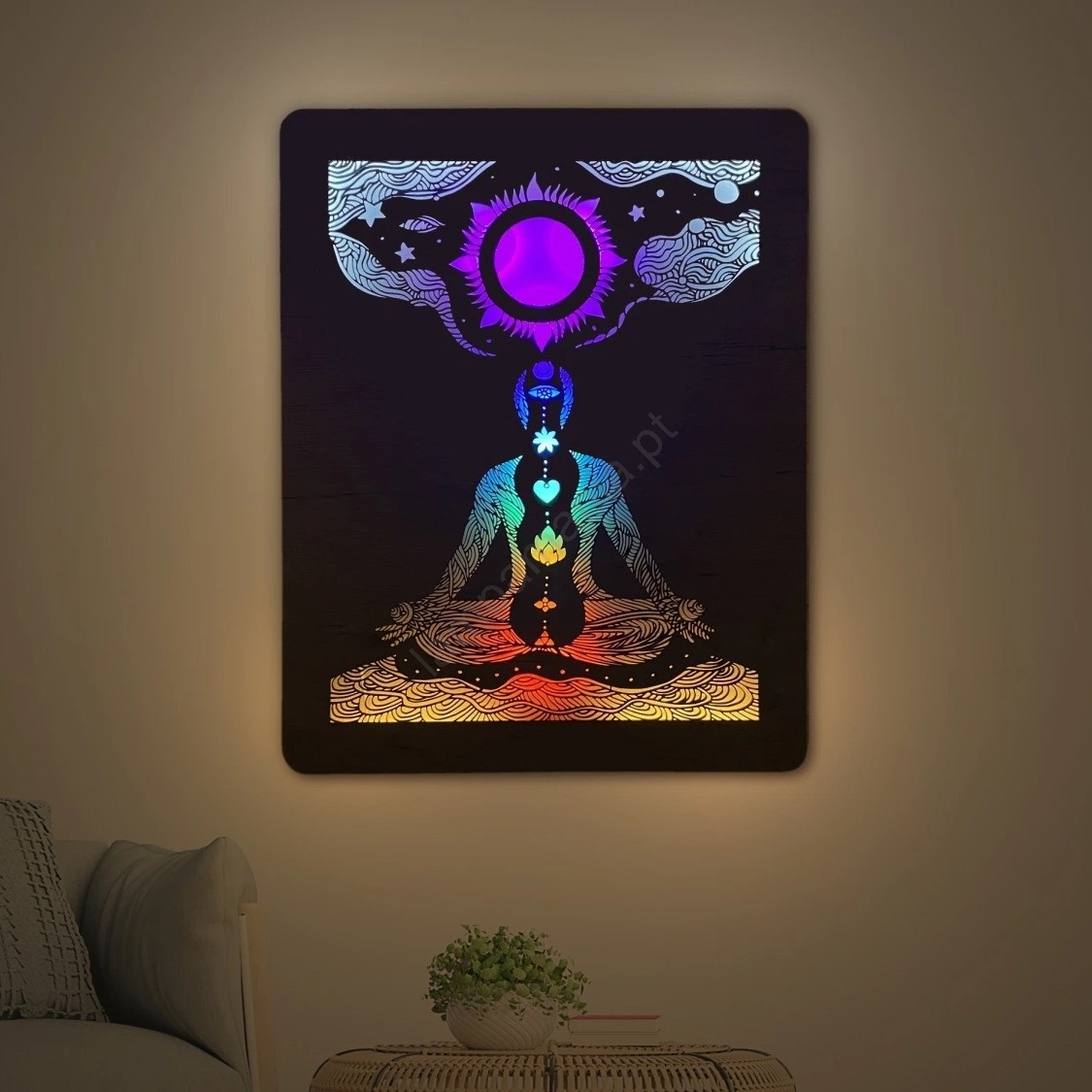 Li-Go 4421/A/4 - Decoração de parede LED dimerizável LED/10W/5V 30000 mAh 70x90 cm carvalho/chakras