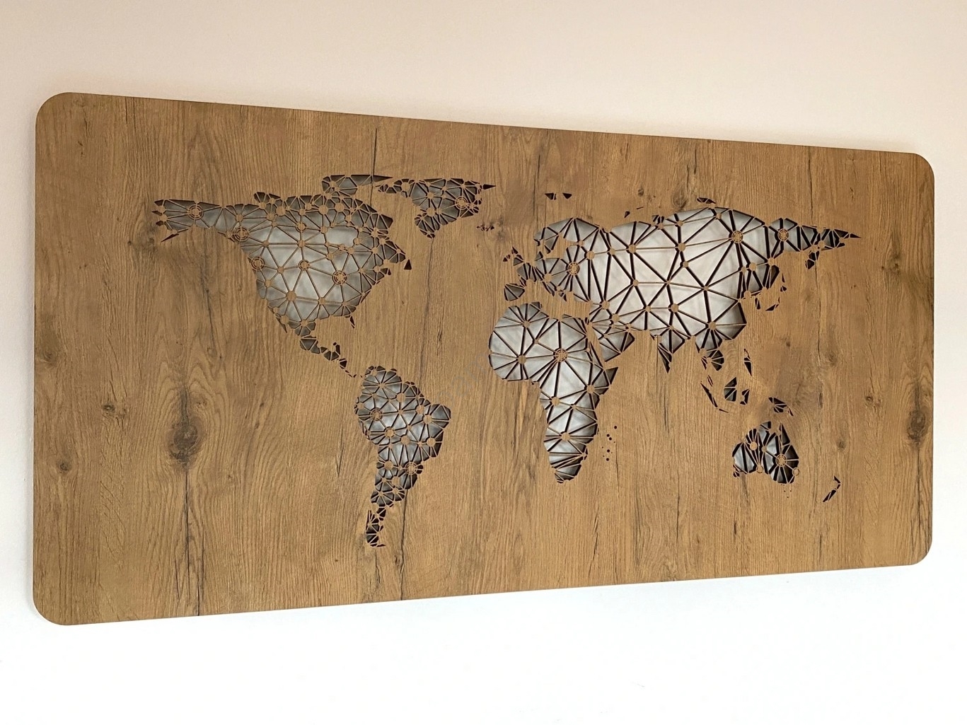 Li-Go 4457/A/4 - Decoração de parede LED regulável LED/10W/5V 30000 mAh 120x60 cm carvalho/Mapa do Mundo