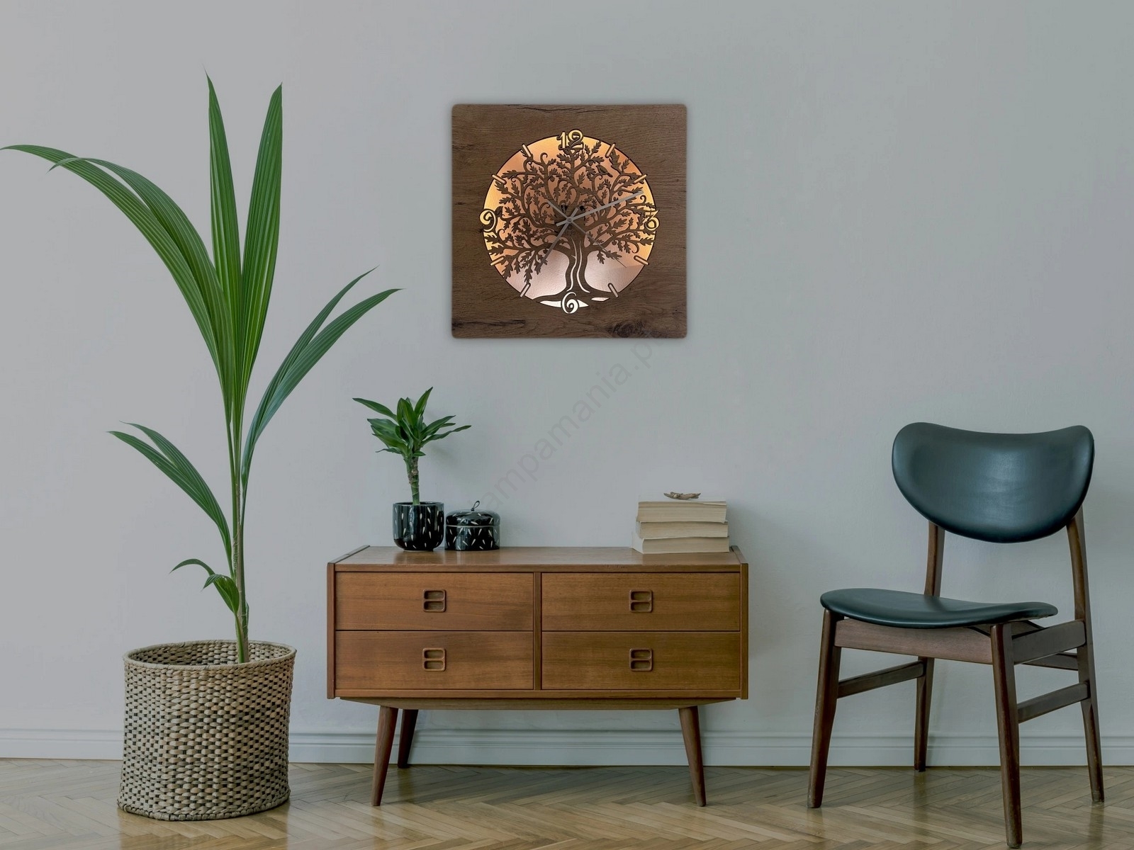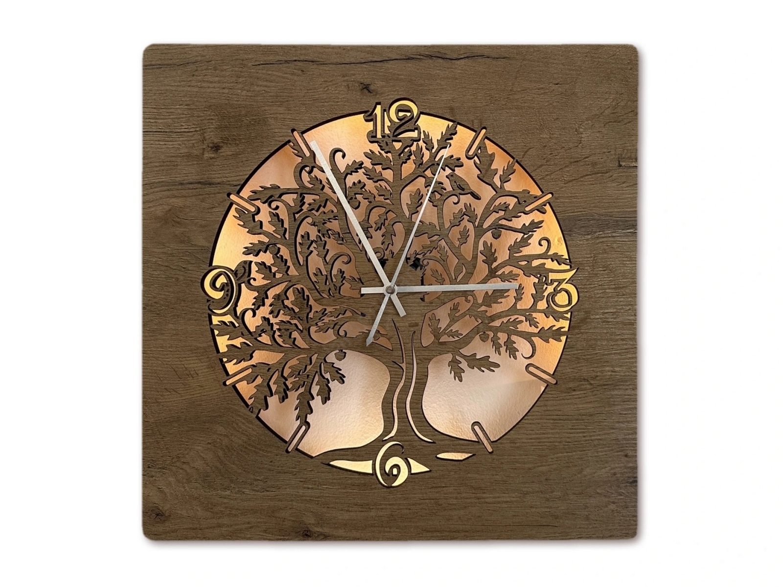 • Li-Go 23537/DUB2 - Relógio LED regulável LED/10W/5V 20000 mAh 42x42 cm carvalho/oliveira com moldura circular + controlo remoto