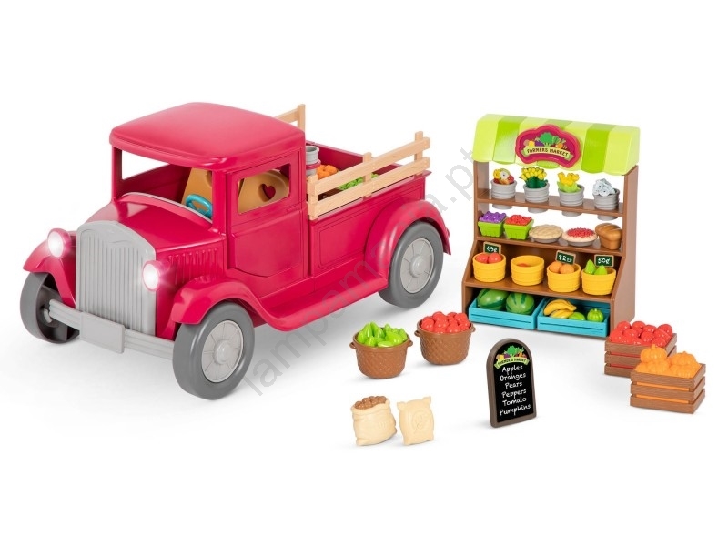 Li'l Woodzeez - Conjunto de brinquedos camião do agricultor com banca de comida 3xAAA