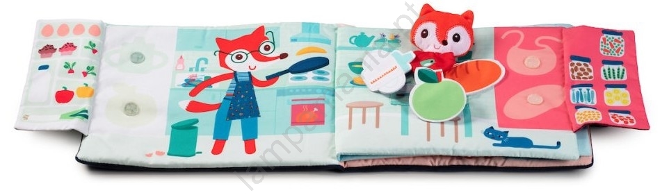• Um lindo livro de tecido repleto de imagens coloridas e atividades interativas.
