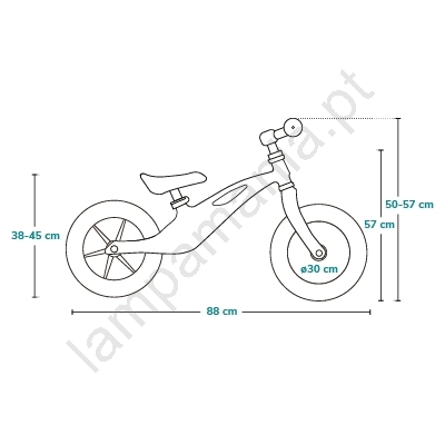 • Com assento ajustável em altura (35 - 43 cm) e guidão (50 - 57 cm).