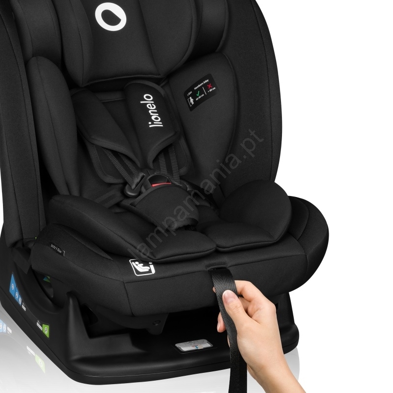 • O Lionelo Izzy i-Size é uma cadeira auto para crianças dos 40–150 cm, certificada pela norma de segurança R129.