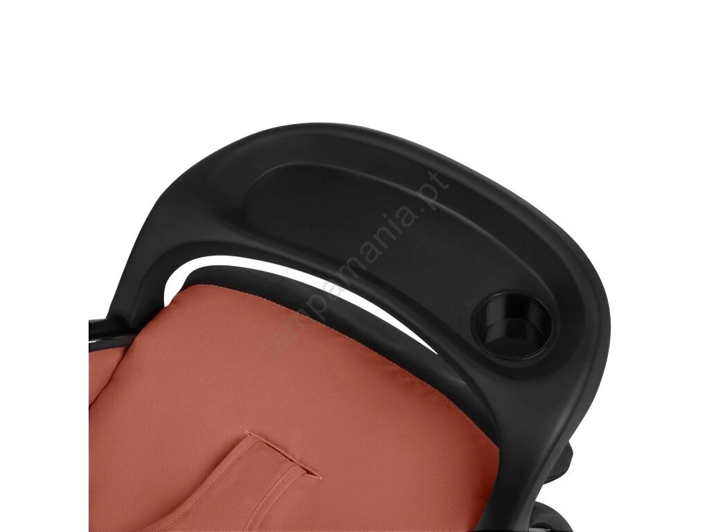 • O carrinho inclui uma barra frontal em formato de bandeja, permitindo que a criança apoie a mamadeira ou o lanche durante o passeio.