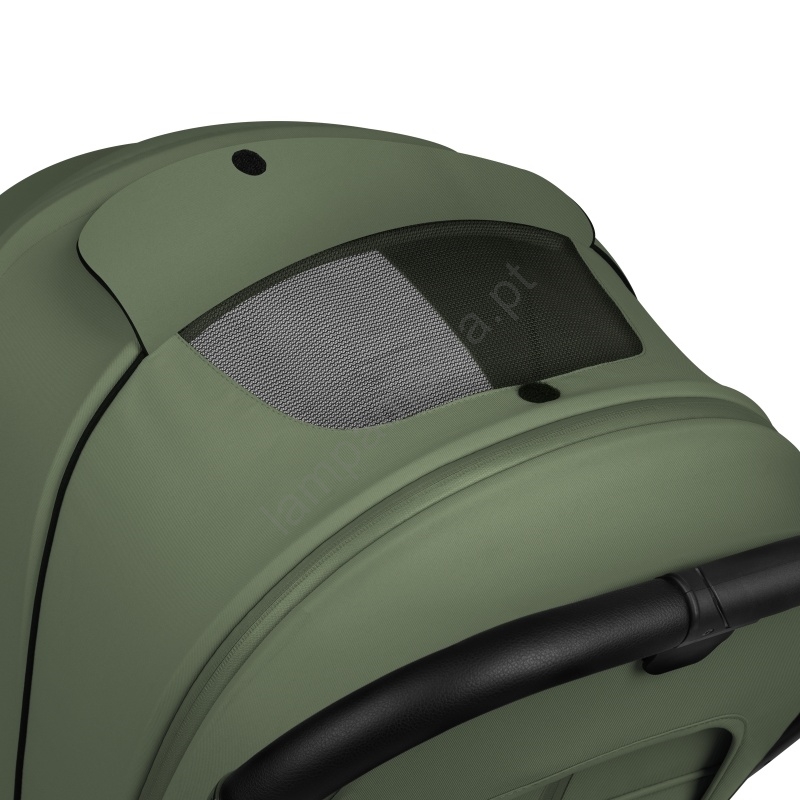 • Capota impermeável XXL com filtro UPF 50+ e proteção lateral contra o vento.