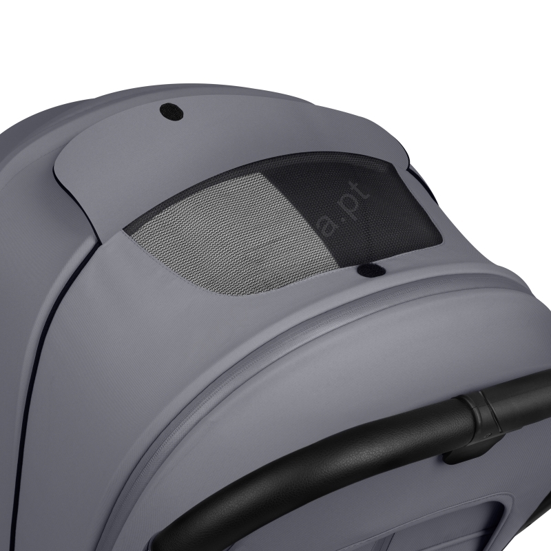 • Capota impermeável XXL com filtro UPF 50+ e proteção lateral contra o vento.