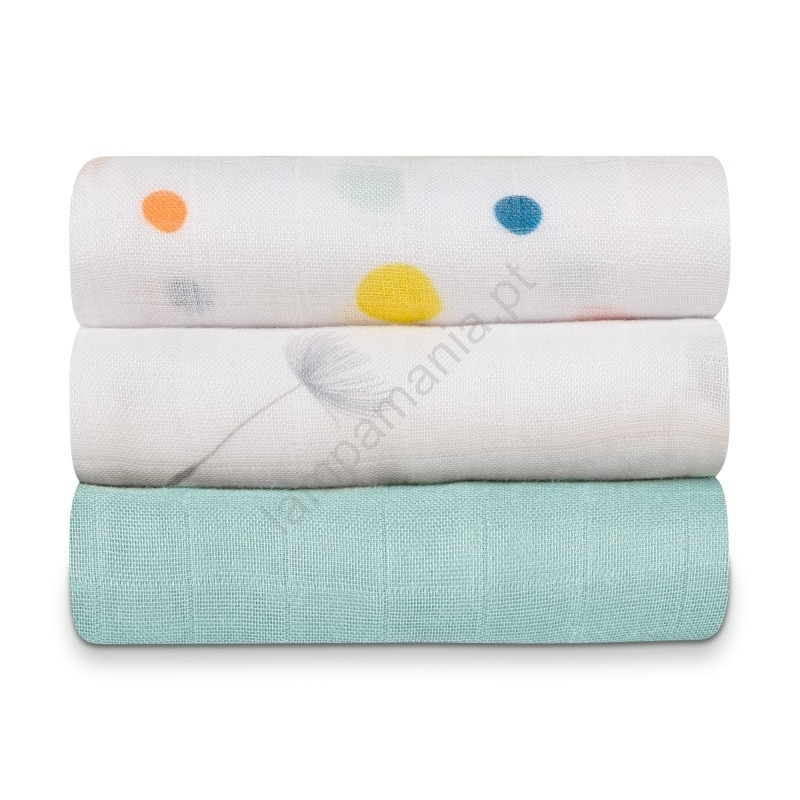 • Conjunto com 3 fraldas de bambu Dot.