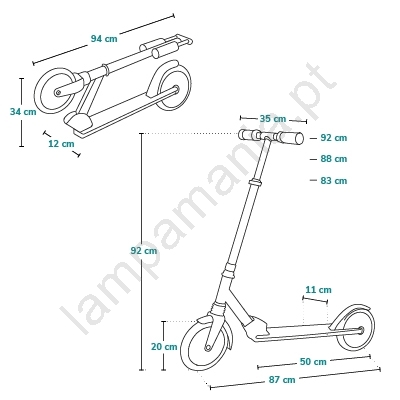 • O patinete é leve, resistente e pode ser facilmente dobrado para dimensões compactas.