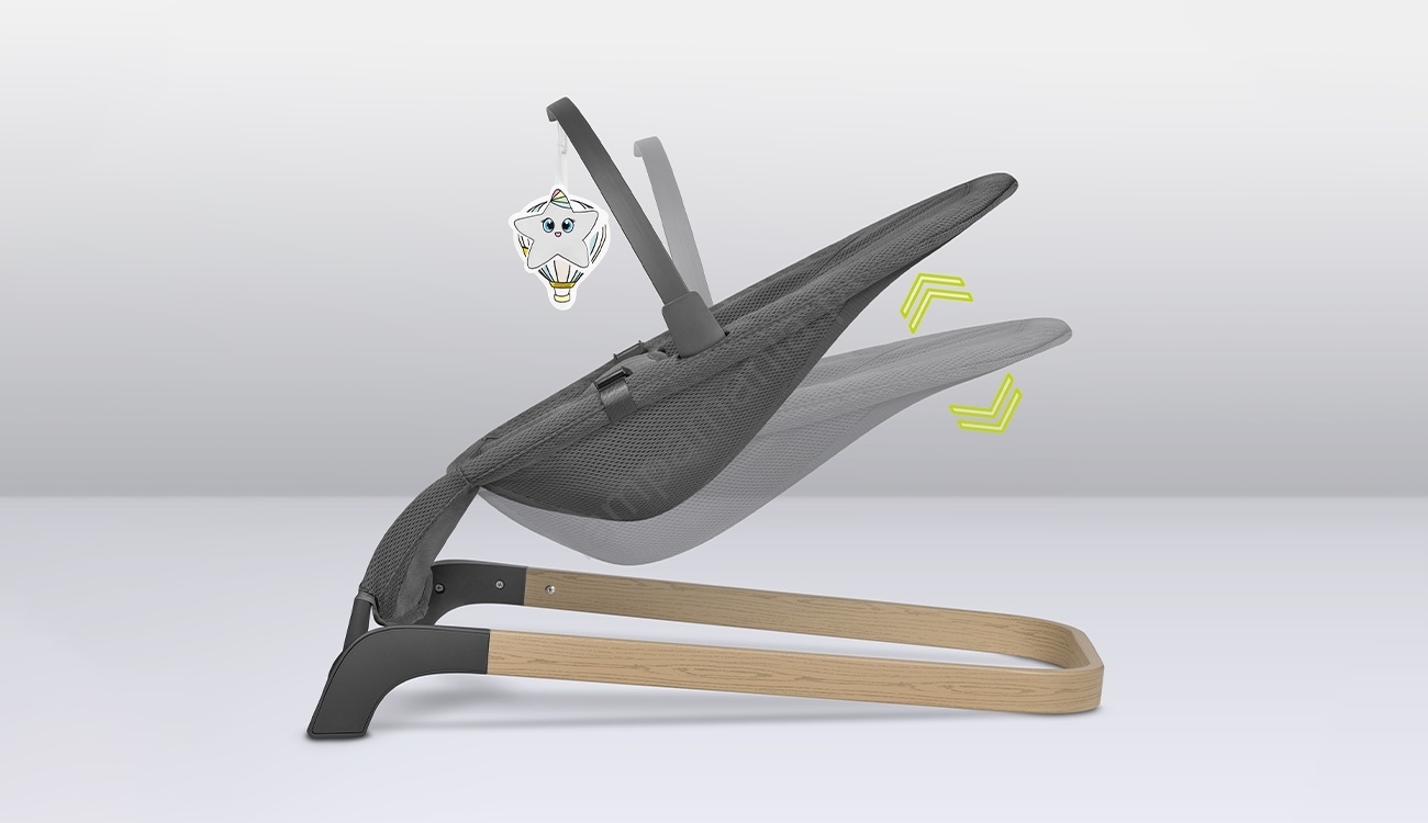 • A espreguiçadeira baloiçante é ativada pelos movimentos naturais do bebé, promovendo o desenvolvimento da motricidade e do equilíbrio.