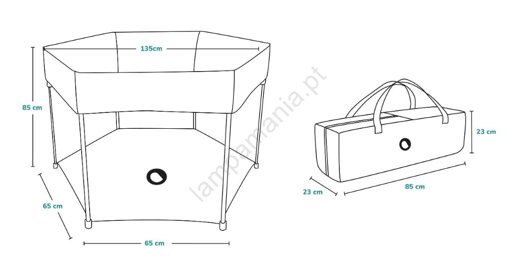 • O cercado é fornecido com uma bolsa de transporte com alça prática para facilitar o transporte.